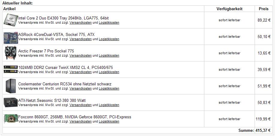 Und eine gute PCI express graka such ich auch noch.