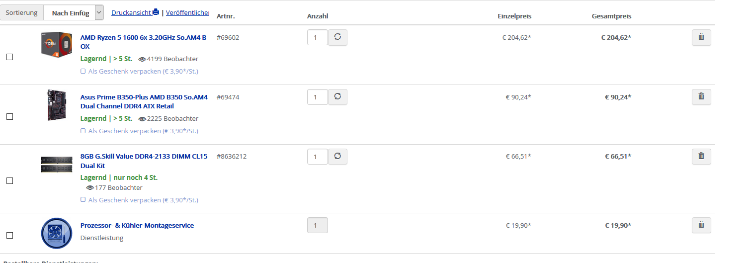 Es soll ein Ryzen 1600 auf demAsus Prime B350 plus sein mit 8 GB speicher sein ddr4 2133 ....Der Rechner ist für Spiele und Multimedia sowie video Schnitt etc also Allround ausgelegt... Als GPU wird ne 1060 MSI 3 GB weiterbenutzt....sowie ne 830ssd und ein 2 GB Datengrab....