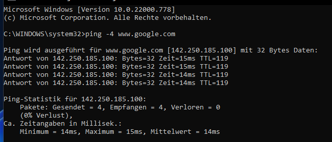 So, hier mal die Ping geschichte