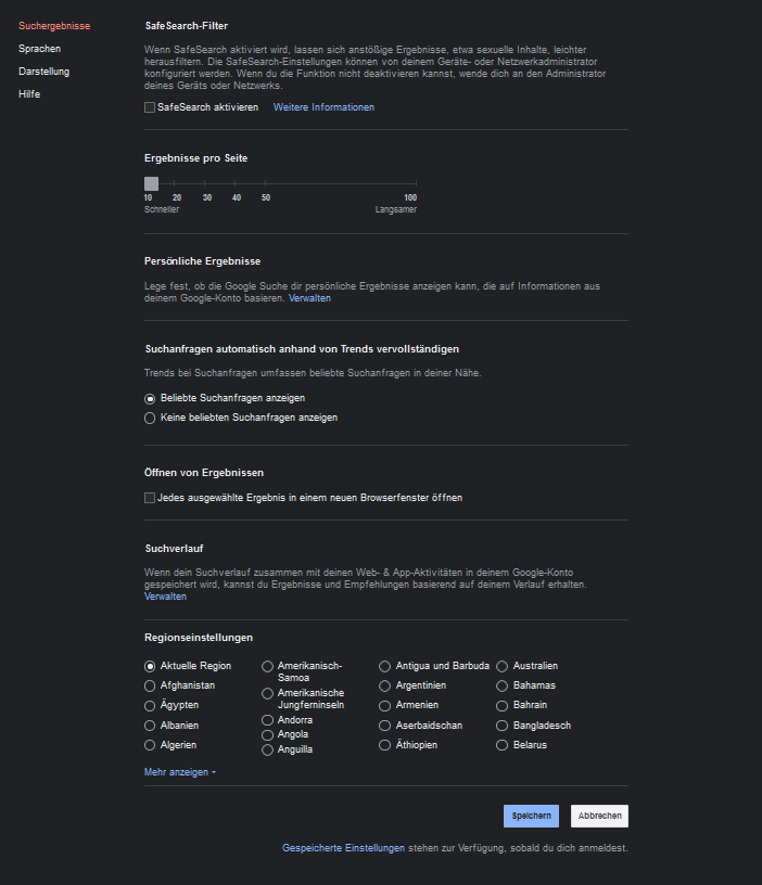 Und ein Hinweis: ich bin z.B. zum Suchen nie bei Google angemldet.
