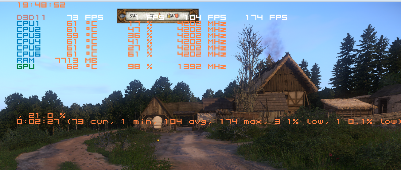 Hier mal Elex mit 4,3 Ghz oder KCD mit 4,2 Ghz ( KCD ist sehr CPU lastig )