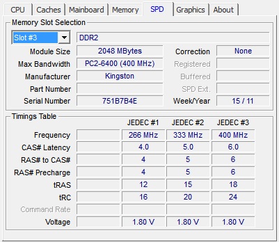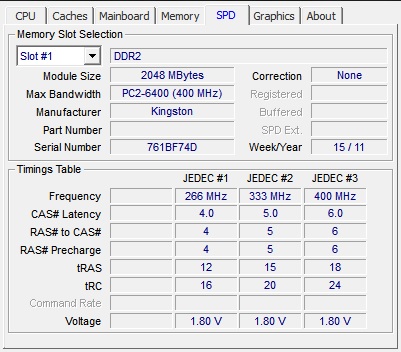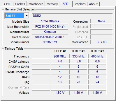 Ram: 2x 2GB Kingston, 2x 1GB Kingston DDR2-800