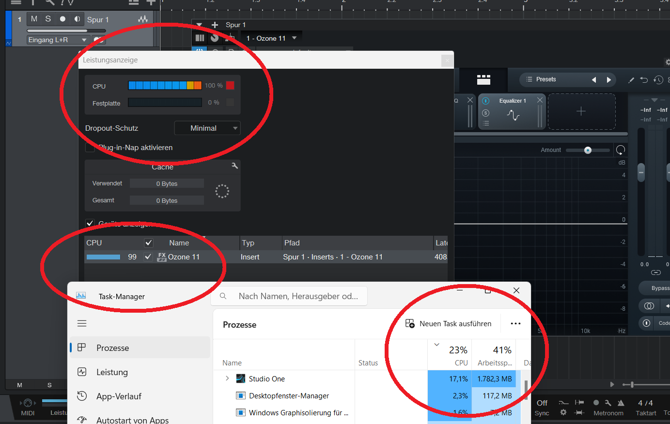 ProBook verfügt über mehr CPU Leistung, als von der Software maximal verwendet wird. Dadurch kommt es zu Aussetzern in der Software. Bei der Software handelt es sich um eine musikproduktions Software, namens Studio One. Ein Screenshot dazu hänge ich an.