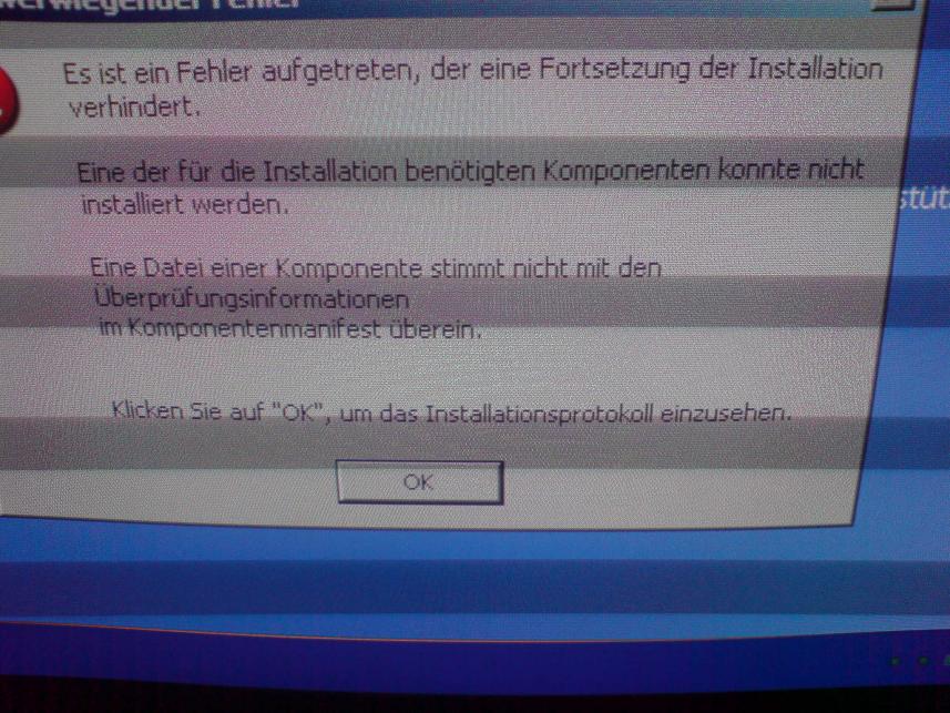 Eine der für die Installation benötigten Komponenten konnte nicht installiert werden.