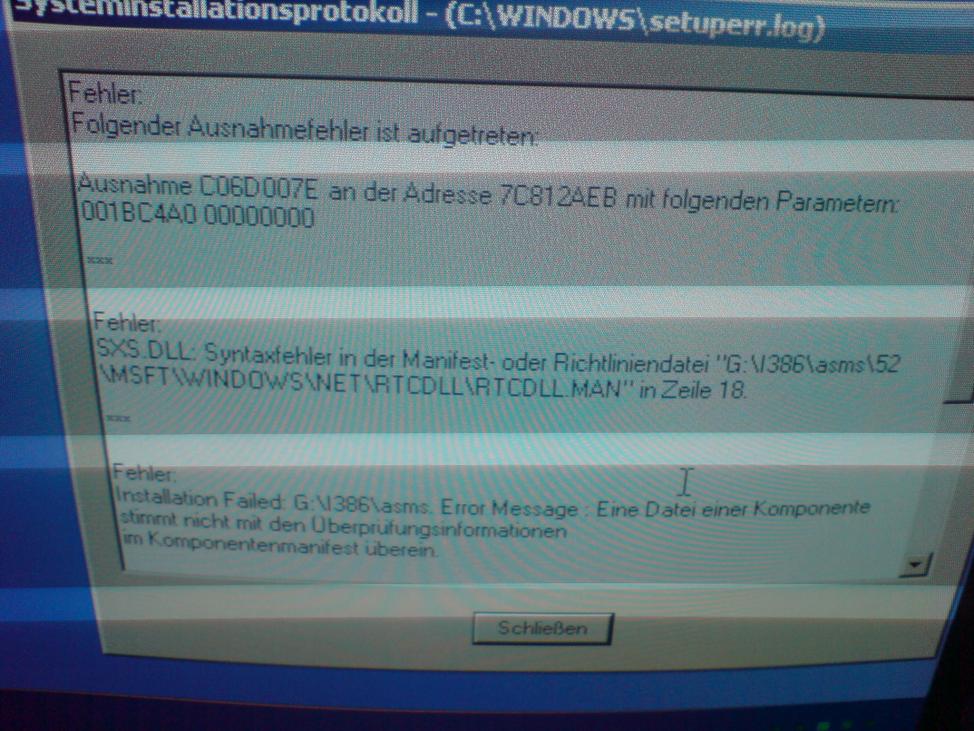 "Es ist ein Fehler aufgetreten, der eine Fortsetzung der Installation verhindert.