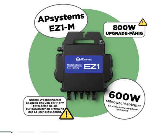 Würde einen APsystems EZ1-M 800W WR nehmen ( 20 Jahre Garantie; wenn er 10 Jahre tut, auch gut )