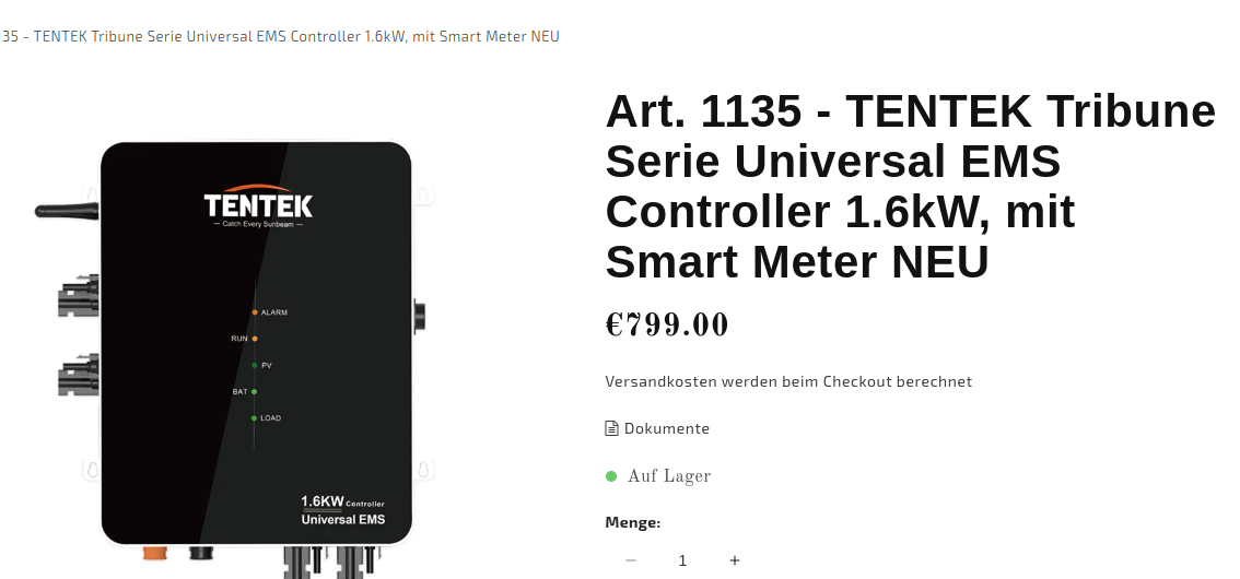 Ist kompatibel mit dem Tentek EMS Controller u. 5kWh Speicher