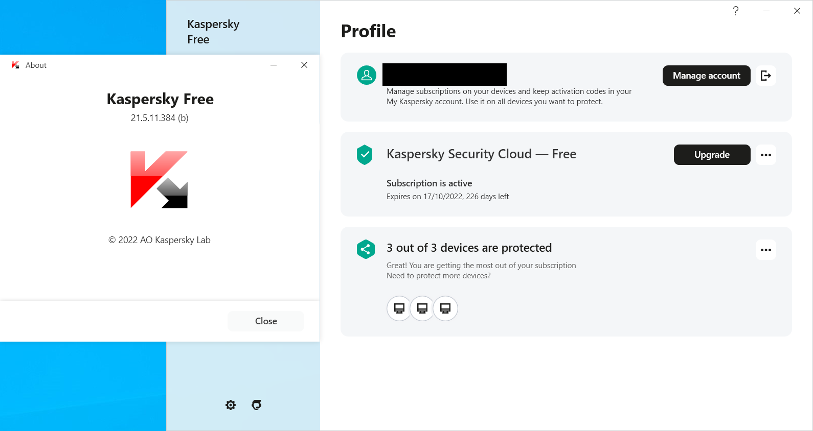 Das eigentliche Kaspersky Antivirus Free wird ja nicht weiterentwickelt, kriegt keine Programmupdates, nur Signaturenaktualisierungen und ehrlich gesagt geällt mir da Kaspersky Security Cloud Free etwas besser als das Kaspersky Antivirus Free.