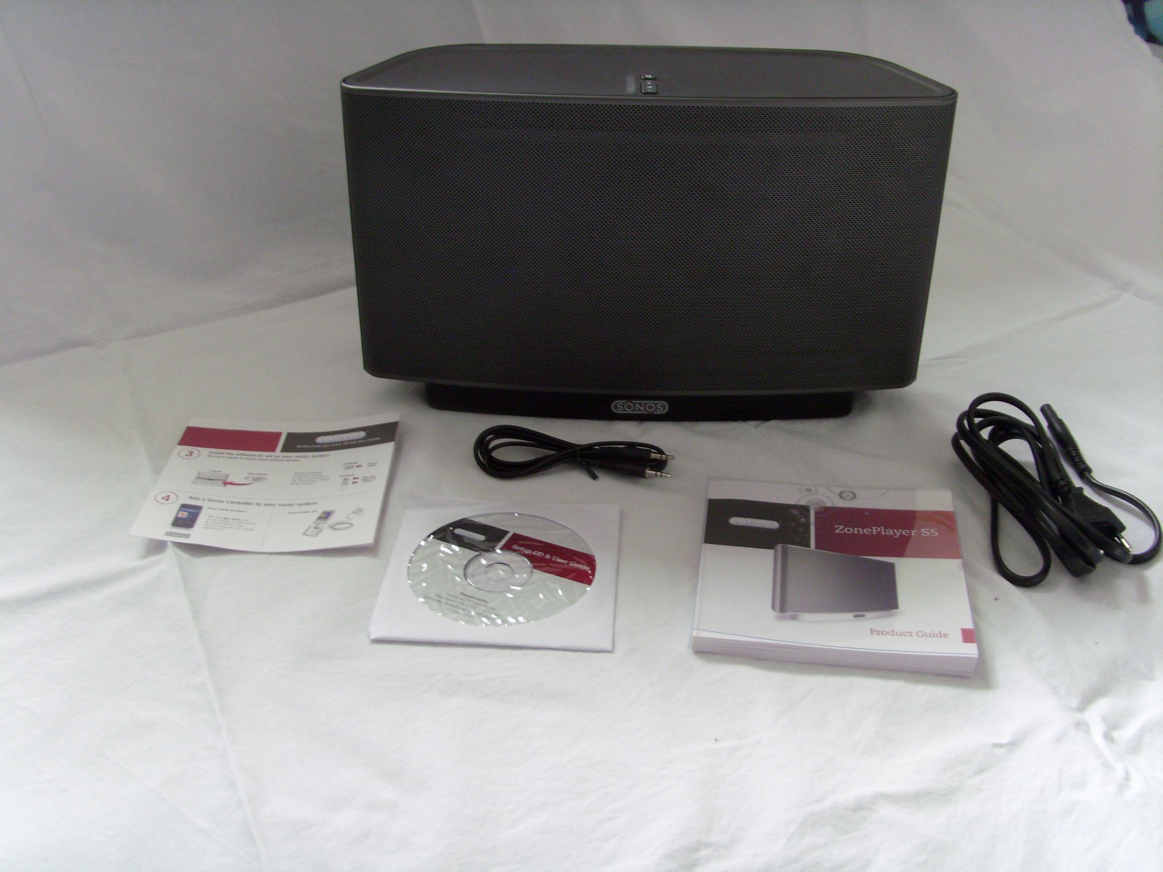 Der ZonePlayer S5 ist ein eigenständiges Empfangsgerät für Musik mit integrierten Lautsprechern. Ein all-in-one Gerät. Gesteuert werden kann das ganze über ein iPod, iPhone, iPad und den PC oder Mac, eine Android App wird laut Herstellerseite bald verfügbar sein. Er muss mit einer Zonebridge verbunden werden, ist das geschehen spielt er Musik ab. Er verfügt über 3 manuelle Tasten auf der Oberseite des mattschwarzen Gehäuses, die zur Lautstärkeregelung dienen(Vol+,Vol- und Mute). Dort befindet sich auch ein Status-LED.