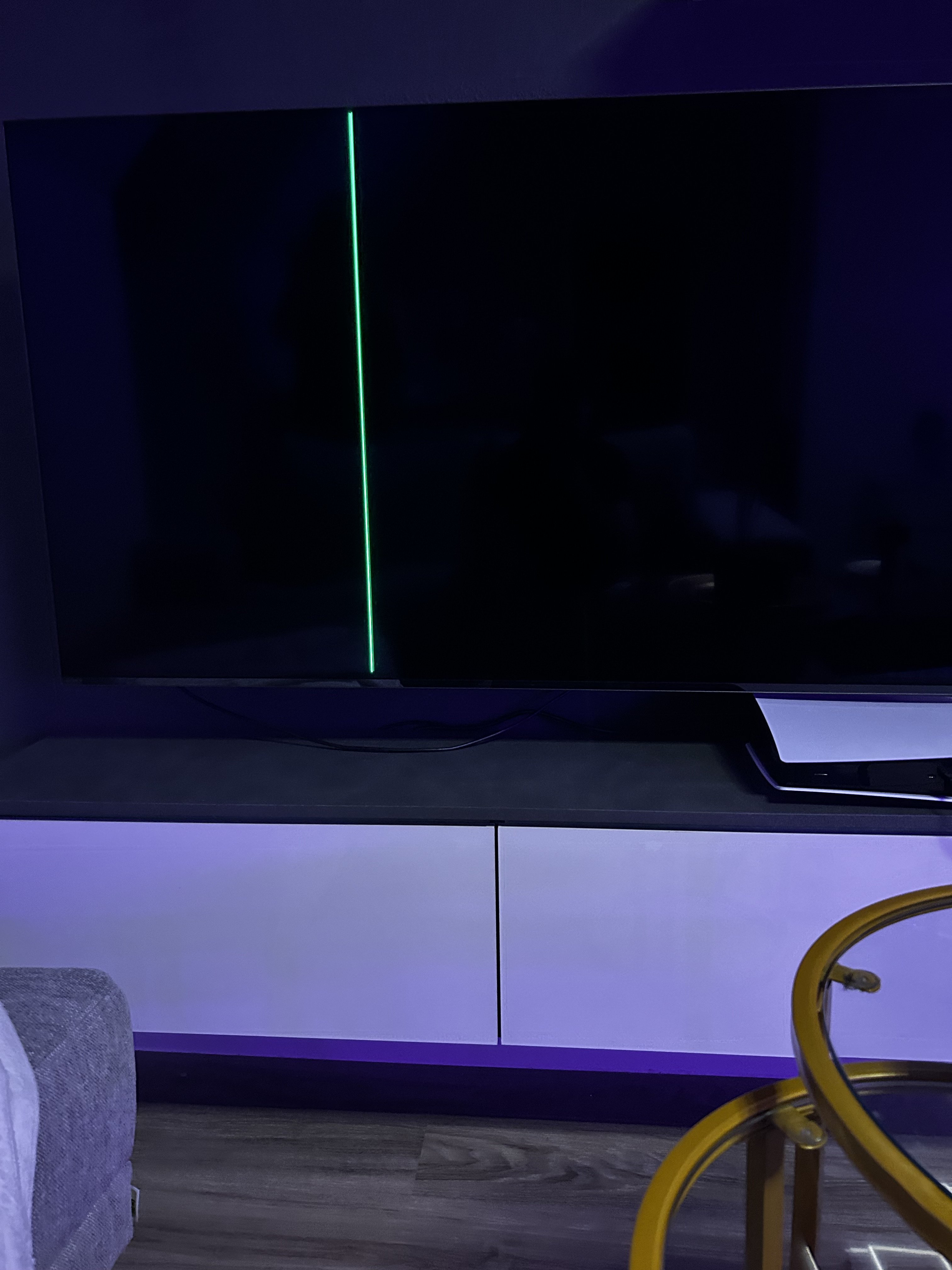 Diese Linie entstand schon als das Gerät am Laufen war und ging nicht weg, woraufhin ich den Fernseher Neustarten wollte. Danach ging der nicht mehr an.