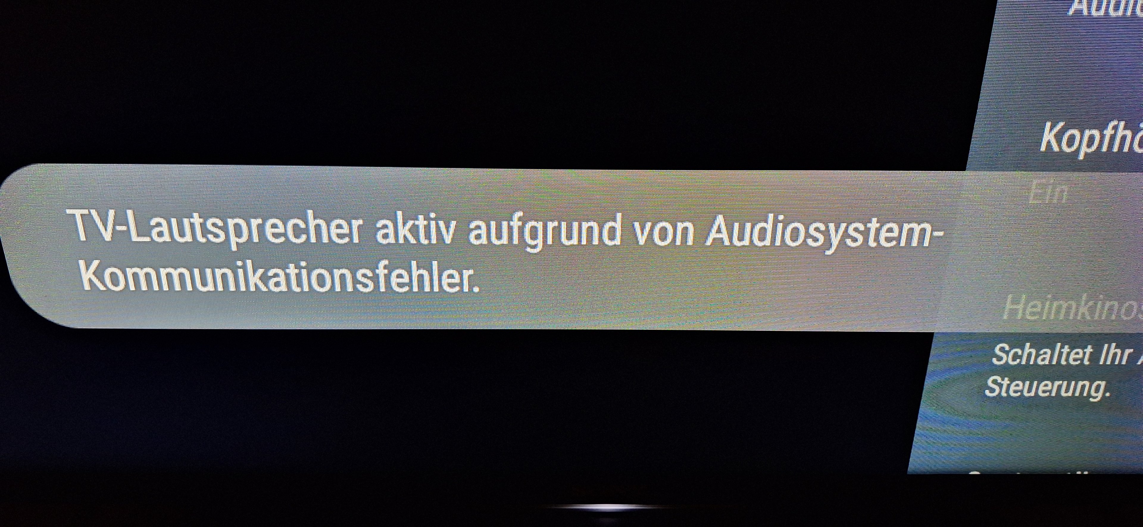 Doch gelegentlich wird beim Anschalten des TV die Soundbar nicht angeschaltet. Mache ich dass dann direkt an der Soundbar, erscheint auf dem Sony TV angehängte Meldung und der Sony schaltet von Audiosystem auf interne Lautsprecher um.