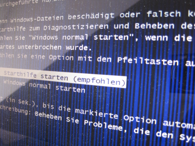 Manchmal startet Windows auch, friert dann aber nach 5 bis 10 Minuten ein und der Bildschirm wird schwarz.