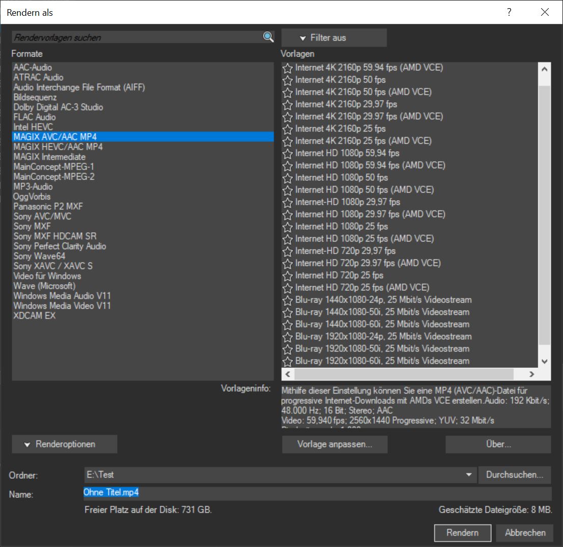 Das Video wird in 2560x1440p 60 FPS gerendert, damit das Video von Youtube den VP9 Codec zugewiesen bekommt, was perfekt funktioniert. Es macht auch kaum einen Unterschied bezüglich der Renderzeit ob ich 1080 oder 1440p nutze, die Renderzeit bleibt +-10 Minuten gleich Lang.