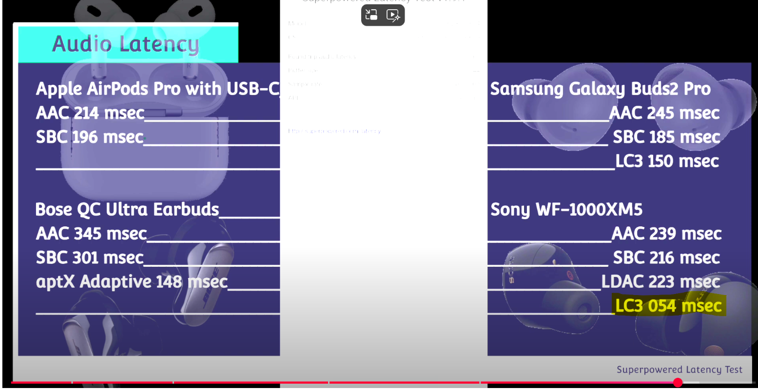 Und bezüglich Kompatibilität und Support sind aptX Low Latency und gerade aptX Adaptive (Low Latency) LC3 (leider) noch sehr weit voraus. Es gibt für LC3 ich glaube gerade mal einen einzigen externen Transmitter und eine handvoll USB-Dongles. Und leider lässt Samsung wie auch bei neueren aptX Codec auf ihren Handys immer noch mit der Unterstützung auf sich warten.