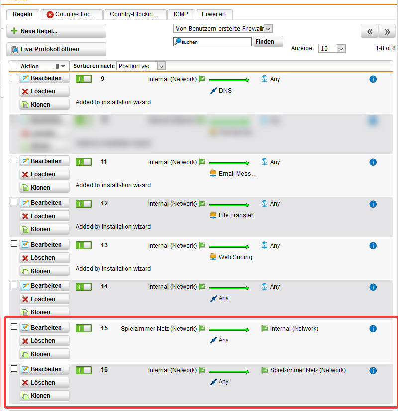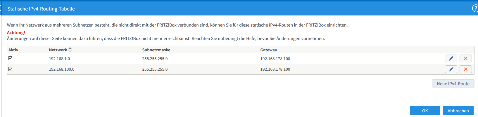 Mag mir jemand nen Tipp geben, wo ich beim Einrichten nicht aufgepasst hab? - Das interne Netz funktioniert seit nem Jahr ohne Probleme (Internet etc.). Grüße!