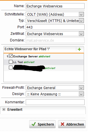 Es gibt ensprechende NAT Regeln, allerdings habe ich das Phänomen, das zwei Leitungen die Kommunikation mit dem Exchange Server zu lassen, die neue Leitung allerdings nicht. Ich stehe absolut auf dem Schlauch, leider gibt mit das Firewall Log auch nicht wirklich aufschluss.