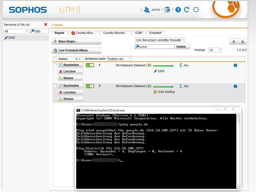 ich habe vor meine virtuellen "Test-Maschinen" durch eine Sophos UTM (9) in ein eigenes Netzwerk zu verfrachten und vom Produktivnetz abzuschotten. Die UTM läuft ebenfalls als VM auf dem gleichen Host und steht somit zwischen den Netzen. Soweit funktioniert auch alles wunderbar, die VMs sind vom Produktivnetz abgeschottet, können dort keine Rechner pingen, die Sophos hat als Standardgateway den Hauptrouter (Fritz!Box) eingetragen, DNS Forwarding funktioniert auch, nur kommen die VMs noch nicht ins Internet.