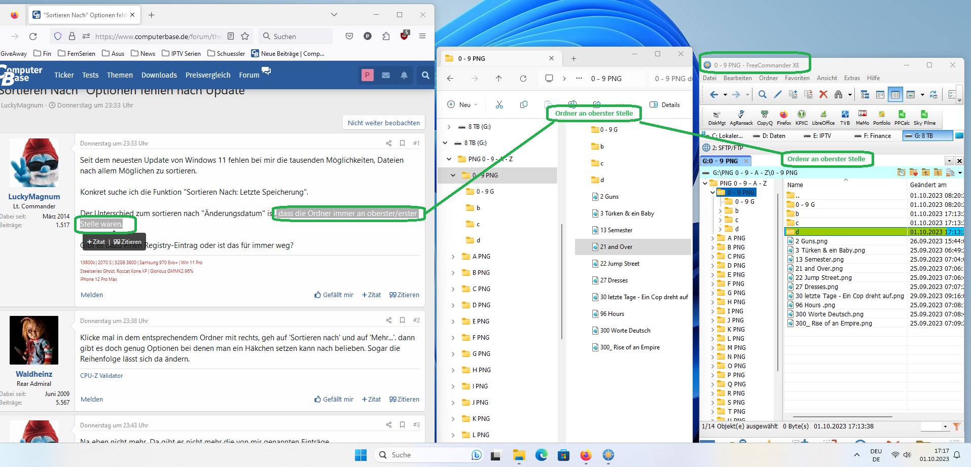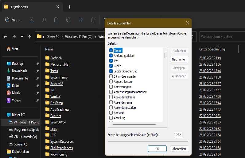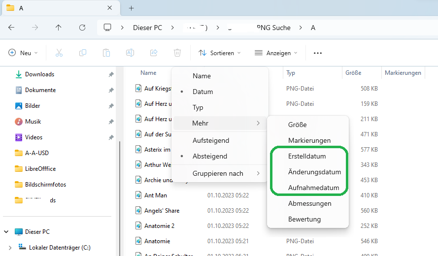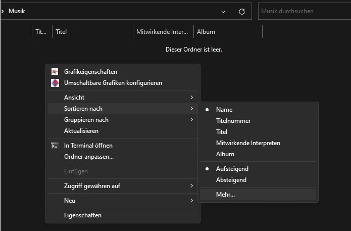 Seit dem neuesten Update von Windows 11 fehlen bei mir die tausenden Möglichkeiten, Dateien nach allem Möglichen zu sortieren.