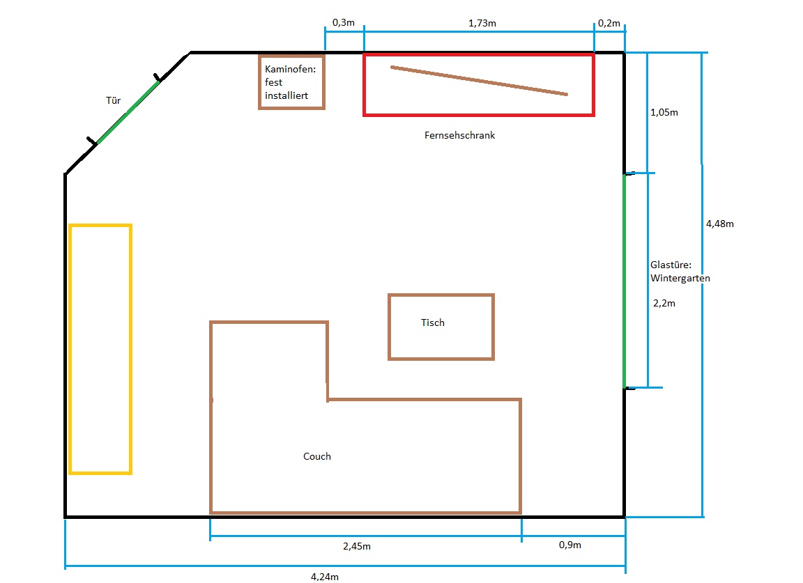 Angehängt habe ich einen groben Grundriss des Zimmers.