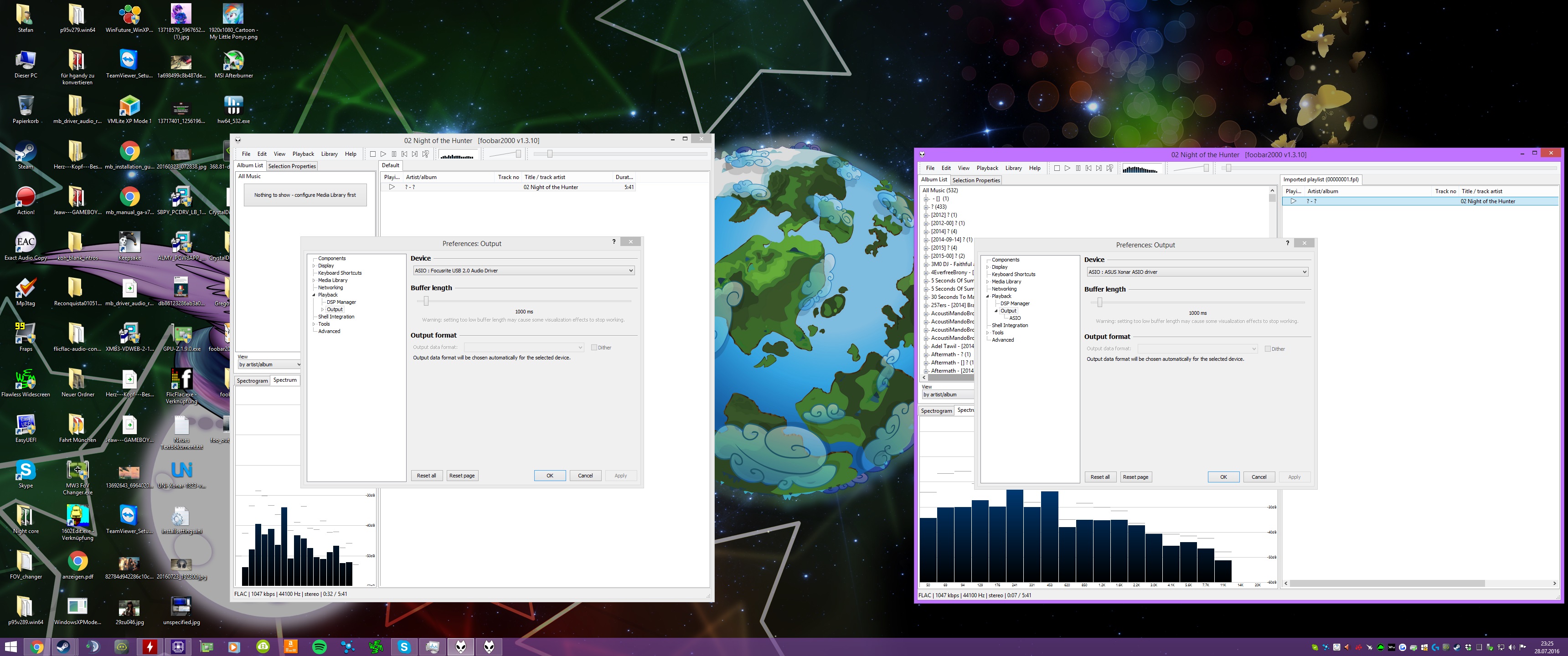 wie kann ich exakt gleichzeitig ein und das selbe Lied über den win Media Player und über Foobar2000 abspielen? Also das es doppelt läuft, wollte zwei verschiedene Soundkarten jeweils verwenden. Handelt sich um einen Test ob es einen klanglichen Unterschied zwischen dem Scarlett 2i2 und der Asus Xonar DGX gibt, hab mir zu dem zweck einen Cinch Switch bestellt.