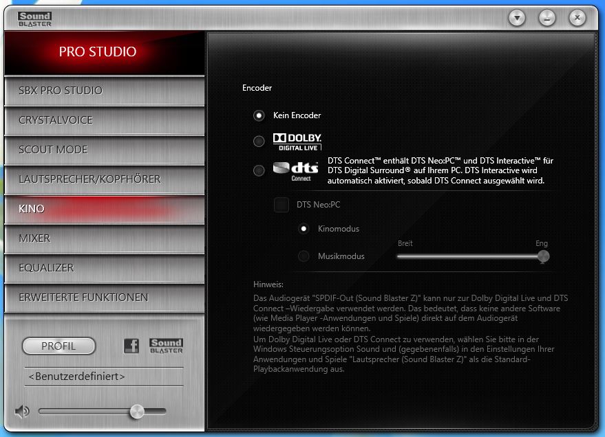 Wenn ich dieses SouindBlaster Cinema (Onboard) Aktiviere wird alles lauter aber der Sound wirkt leicht verfälscht.
