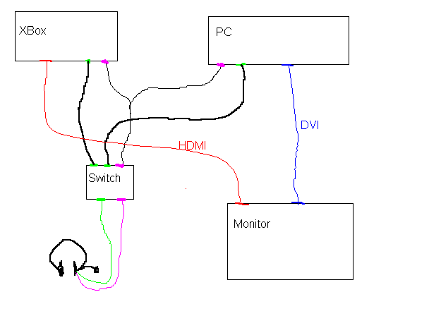gibt es einen "Switch" mit dem ich das Headset zwischen PC und Xbox hin und her switchen kann ohne ständig die Kabel umstecken zu müssen? Wenn ja wie genau heißt das was ich suche?