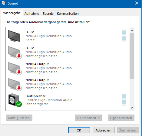 Edit: Unter Wiedergabe hatte ich die Soundkarte eingestellt.