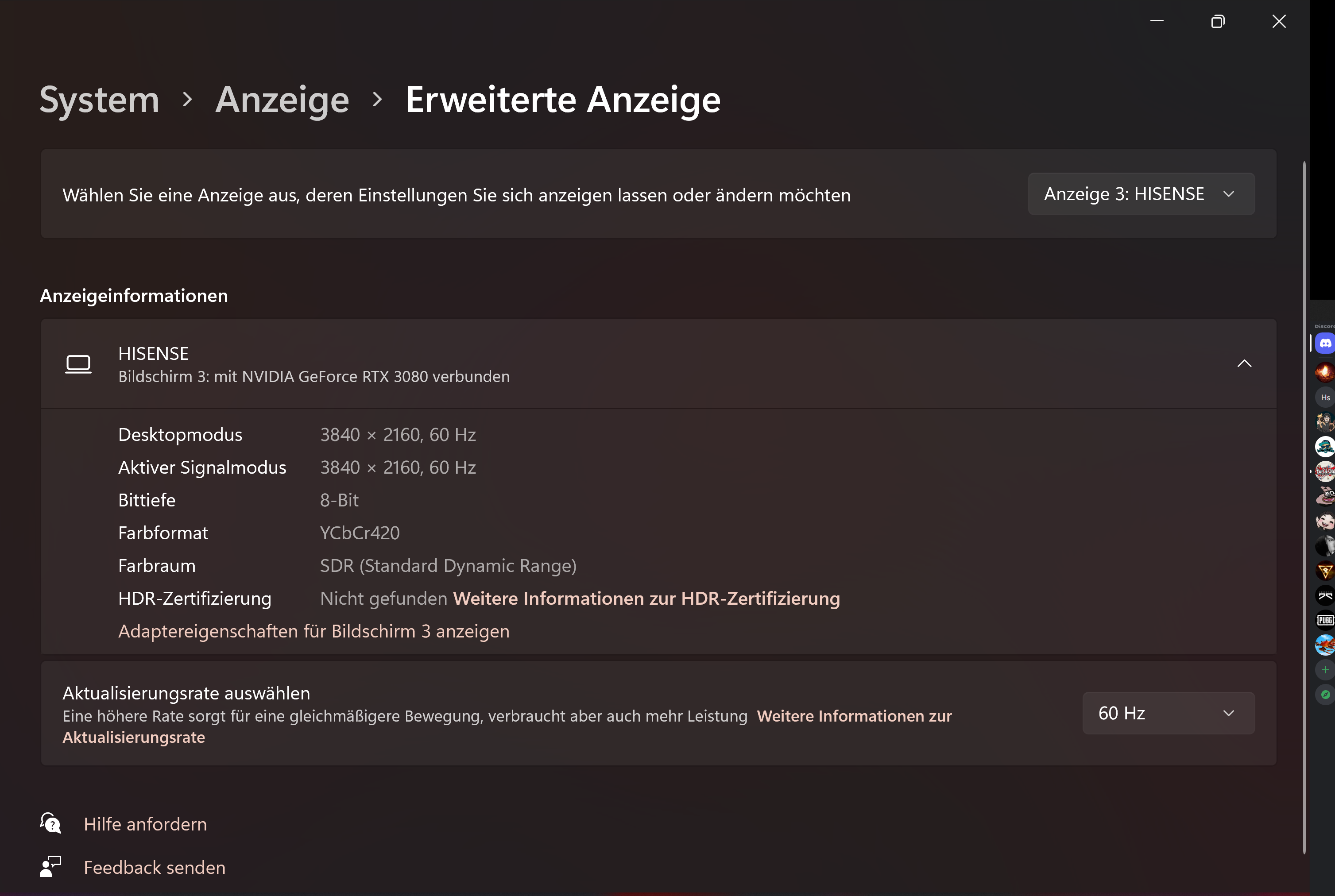 3840x2160 60.000 Hz 16:9 135.000 kHz 594.000 MHz (VIC 97)