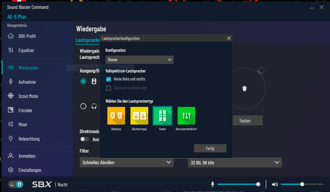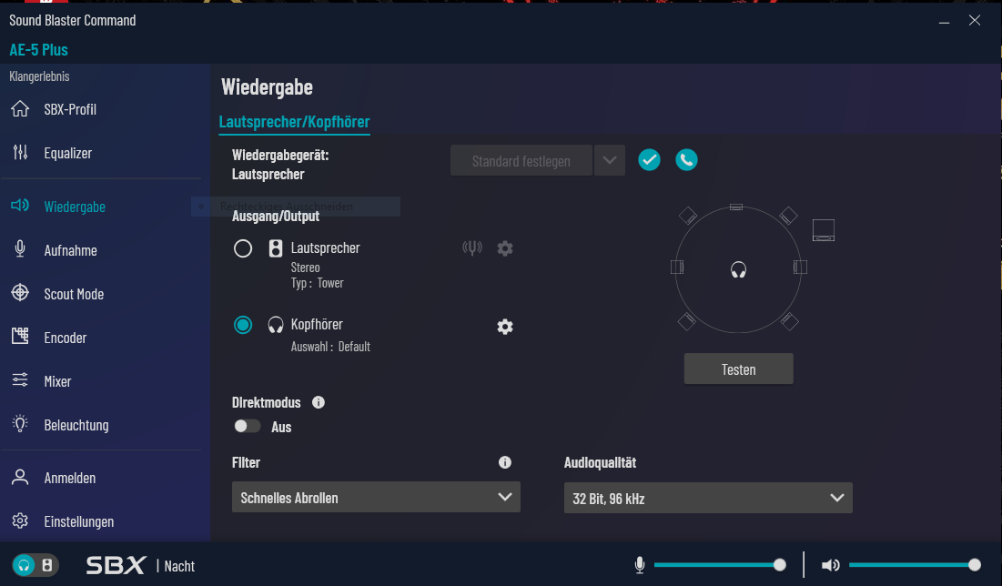 Der 5.1 Sound funktioniert obwohl ich nur 2 Lautsprecher benutze (Bose Compagnion III, aber wenn ich auf Stereo Sound gehe in der Command Software dann kommt kein Sound, obwohl bei Windows in der Lautsprecheranzeige da der grüne Balken hoch und runter geht. Habe das Gerät schon als Standardfestgelegt es wird auch in der Gerätesteuerung erkannt usw Muss man die Karte so in den PCIE Slot stecken, dass auch dieser kurze kleine goldene Bereich (an der Seite sind 2 hellere goldene Steckverbindungen und noch eine kleinere mattere) drinnen ist, weil ich habe es so eingesteckt, dass nur die beiden großén eingesteckt sind? Habe ansonsten alle Windows Soundeinstellungen durchprobiert und den neuesten Treiber usw bringt alles nichts. Muss wahrscheinlich anders in den PCIE
