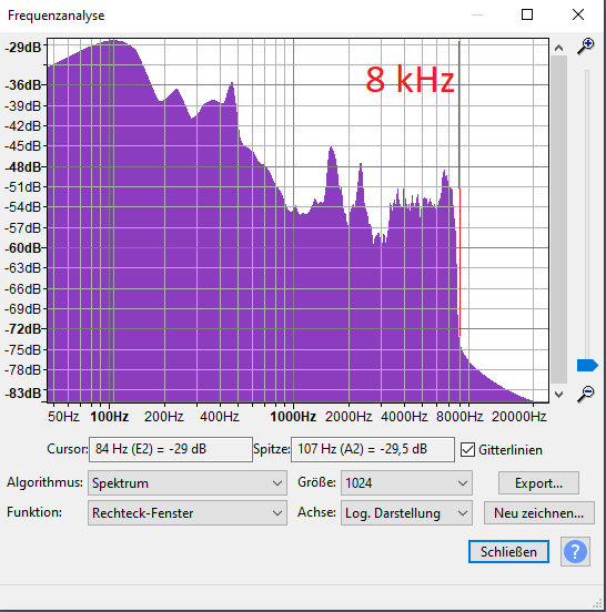 Das wird aber nicht das Problem sein, dass da alle Frequenzen oberhalb von 8 kHz ausgelöscht werden, oder?
