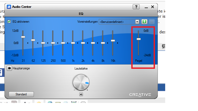 Das Problem kenne ich , du must im Audio Center beim EQ den Pegel Reduzieren