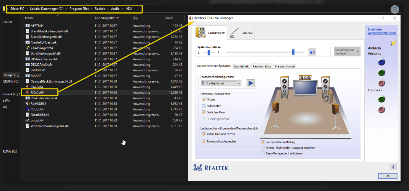 Also das hat irgendwie etwas mit dem Realtek HD Audio Manager zu tun, habe jetzt alle Audio Treiber deinstalliert mit DDU und RealtekAudUService64 neu installiert, aber den HD Audio Manager allgemein finde ich überhaupt nicht, gibts das denn noch mit W11 ich habe nur die Realtek Audio Control APP vom Microsoft Store.
