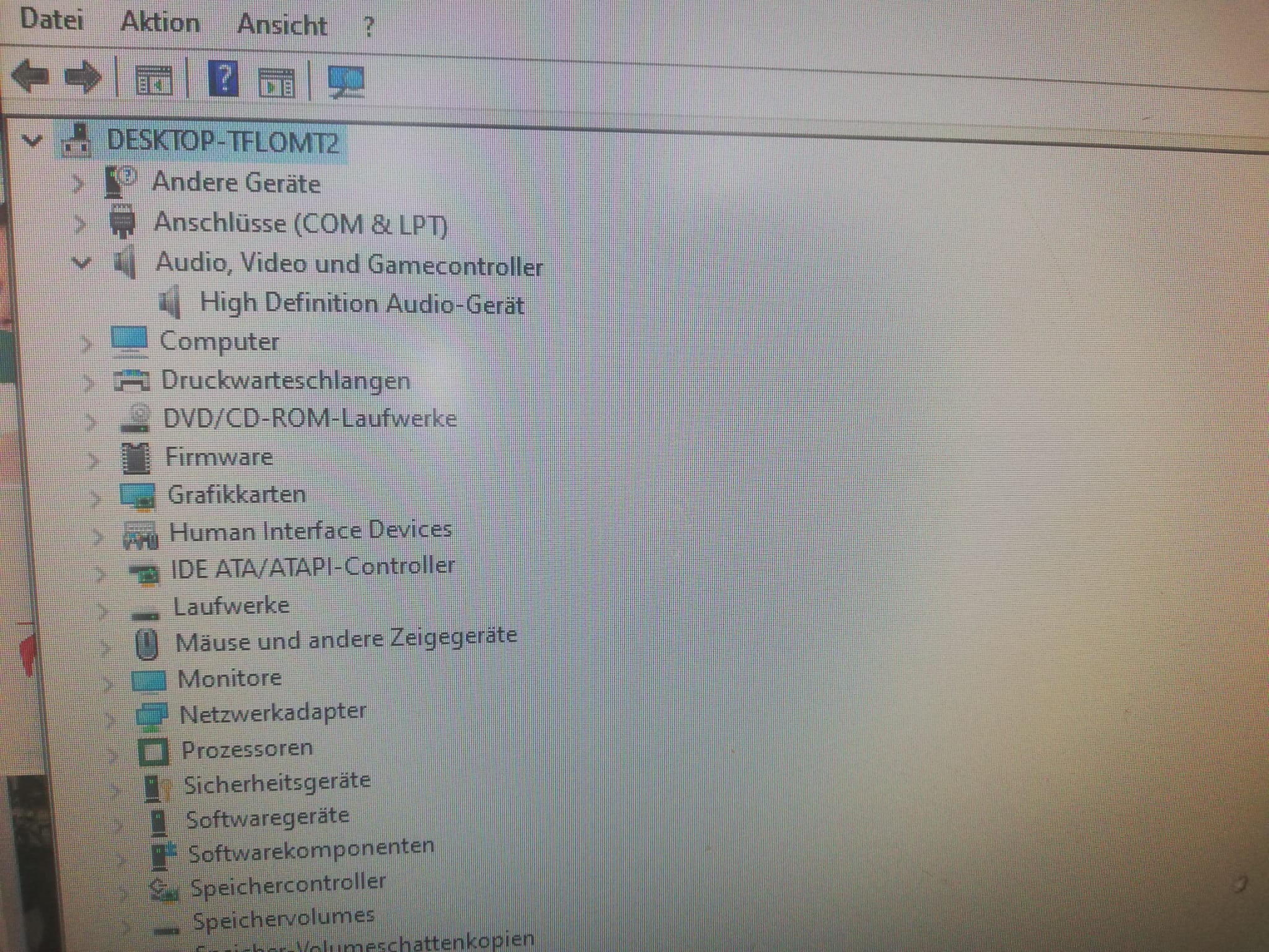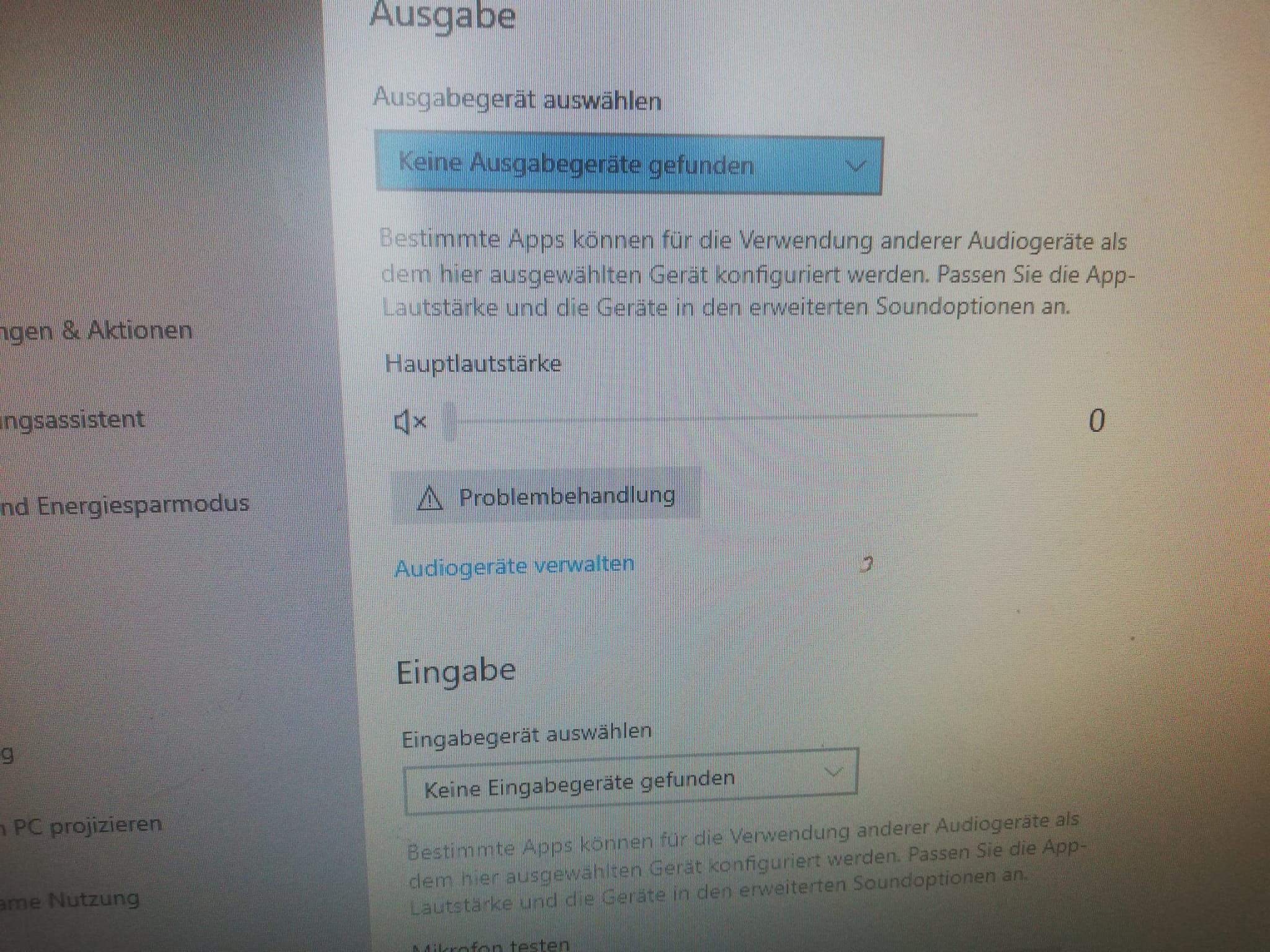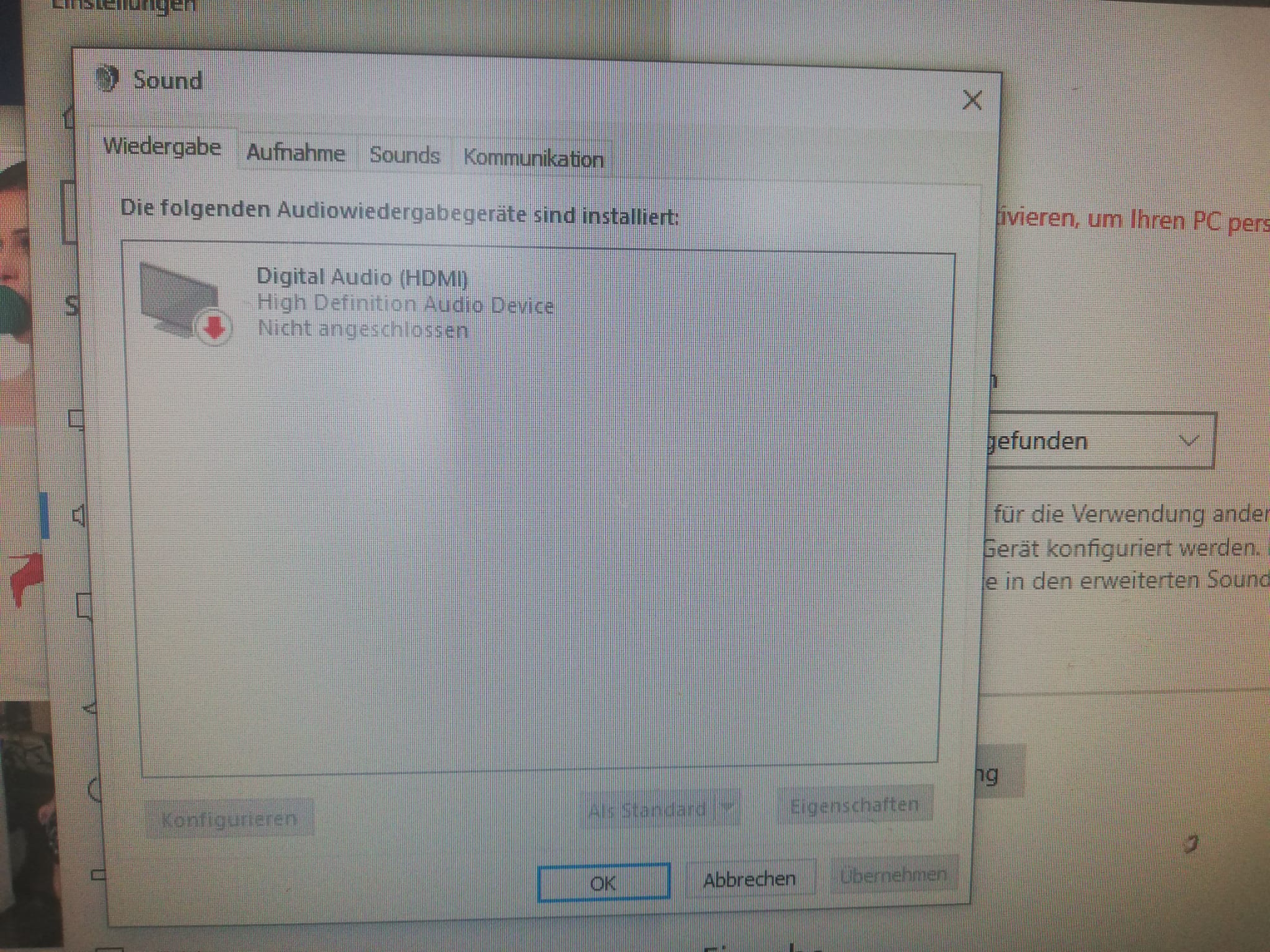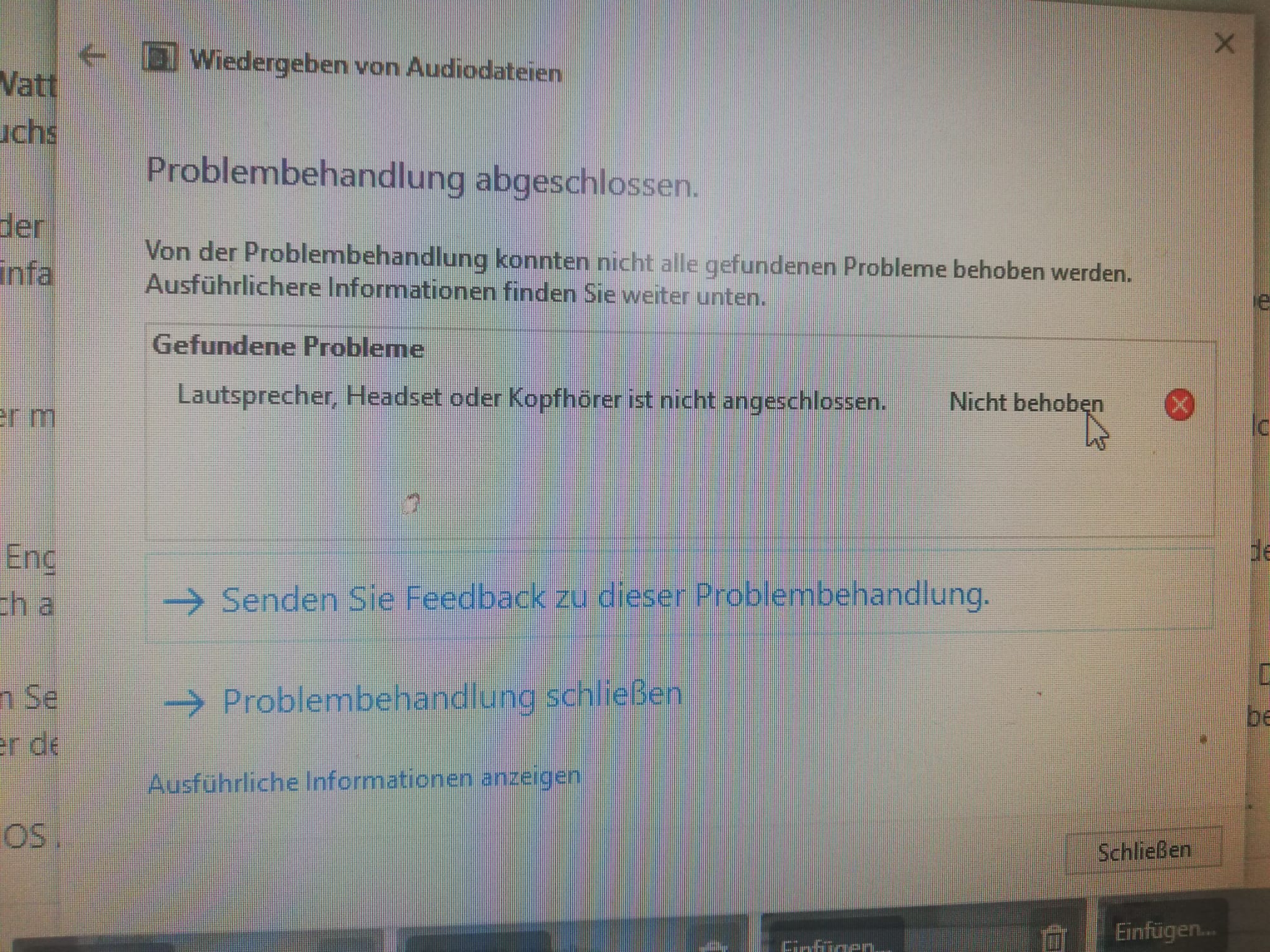 Die Soundkarte wird einfach nicht erkannt und meckert da angeblich keine Boxen eingesteckt sind. Sind diese aber und funktionieren auch.