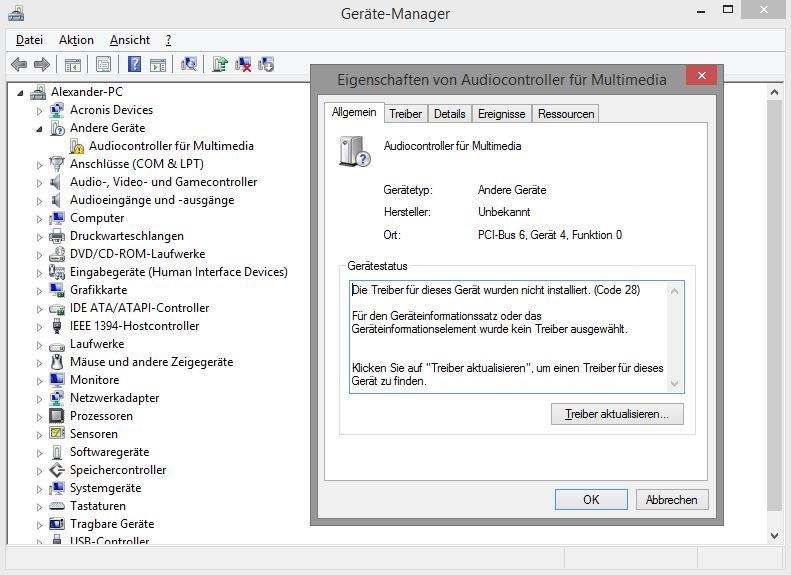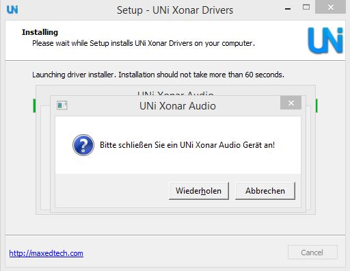 Um alles zu entfernen deinstallierte ich die Soundkarte im Geräte-Manager, was sich wenig später als keine gute Idee erwies, da die Soundkarte wurde nur noch als "Audiocontroller für Multimedia" erkannt und bei jedem Versuch den offiziellen oder den UNi Treiber zu installieren gemeldet wurde, dass die Soundkarte nicht angeschlossen sei.