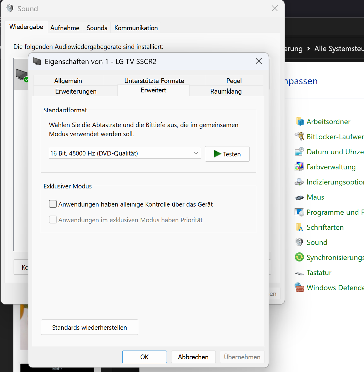 Jetzt habe ich einiges ohne Abhilfe versucht: