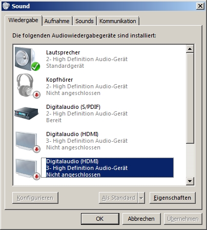 Ich habe mit der Soundausgabe/Klinke von der SoundoOnboard Karte ein Problem. Das Lautsprechersymbol zeigt ein X. Beim Symbol wird angezeigt, das keine Lautsprecher angeschlossen sein sollen. Sind sie aber. Im Gerätemanager gibt es keine Fehler. Ich habe auch den Realtektreiber deinstalliert und wieder neu installiert. In den Soundeinstellungen sind die Lautsprecher als Standardgerät ein grüner Haken. Es gibt da noch einen Konfigurationsbutton doch beim draufklicken tut sich nichts. Der Windows Audio Dienst läuft ohne Problem. Der Tip anstatt "Dieses Konto" das Lokale Systemkonto" zu wählen funktioniert nicht.