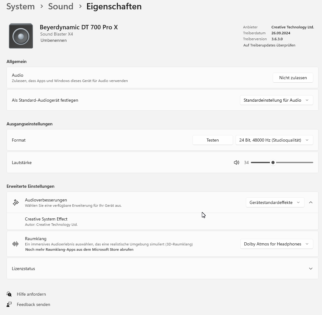 Es gibt Störgeräusche und der Treiber lässt keine Justage zu (Equalizer/Einstellungen nicht vorhanden)