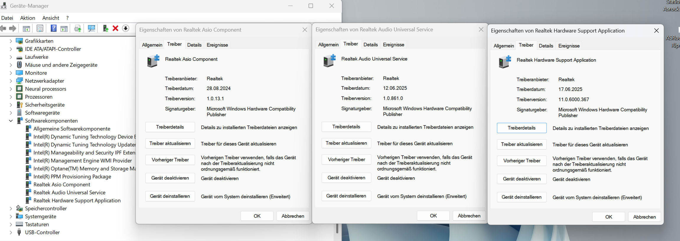 Sowohl mit dem von Windows 11 gefundenen Treiber als auch dem Treiber von Asrock treten die Probleme und fehlenden Einstellungen auf.