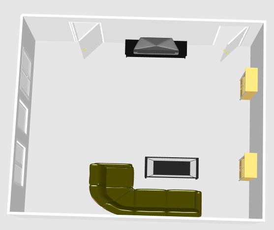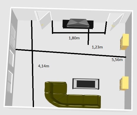Belese Dich zum Thema Stereodreieck und der Aufstellwinkel eines Heimkino-Systems. Dann wirst Du erkennen, d. zum Beispiel der Sitzplatz an der Rückwand bzw. der dortige Hörplatz nicht optimal ist. Wenn es um guten Klang geht, wirst Du auch die Aufstellung des Hörplatzes vll überdenken wollen.