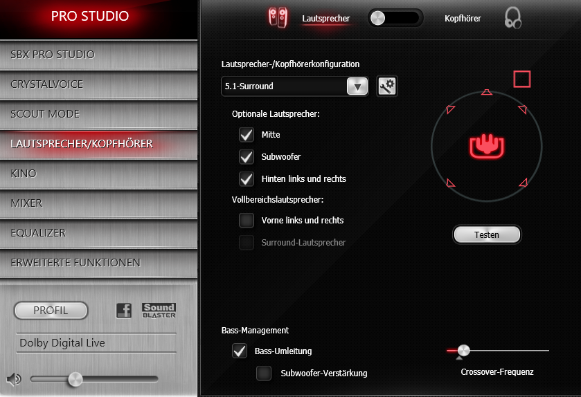 Einstellungen der Soundkarte: