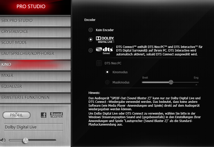 Anfangs dachte ich, dass das System bei einem schwachen Signal automatisch in den Standby versetzt wird, aber so eine Funktion besitzt das System nicht bzw. ich kann dazu nichts finden. Das Problem tritt auch auf, wenn ich keine Programme außer Spotify und der Soundblaster Z-Systemsteuerung offen habe. Ich bin mittlerweile ziemlich ratlos woran und warum dieses Phänomen auftritt, ob es an einem Programm, meinem PC, oder dem Soundsystem liegt. Bin für jeden Rat und Vorschlag von euch dankbar.