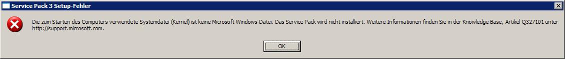 entweder du hast xp64, oder die englische version des sp3 oder ein trojaner/rootkit hat deinen kernel gekillt;