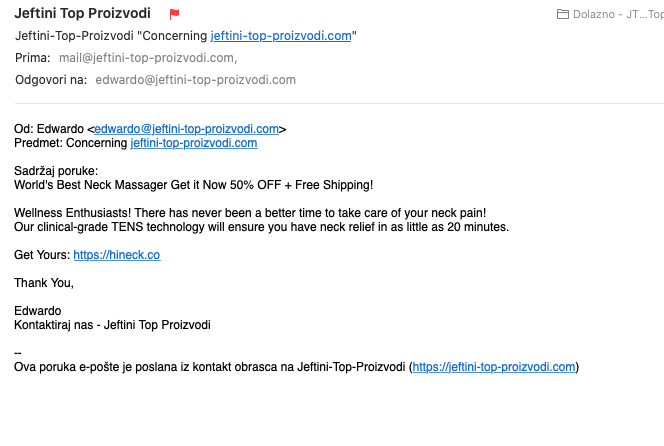 Naja wenn das "https://jeftini-top-proizvodi.com" dein Shop / Domain ist, und das "https://jeftini-top-proizvodi.com/kontakt/" dein Kontaktformular, solltest du das wohl auch entsprechend absichern (oder sehe ich es durch die Sprachbarriere nicht)