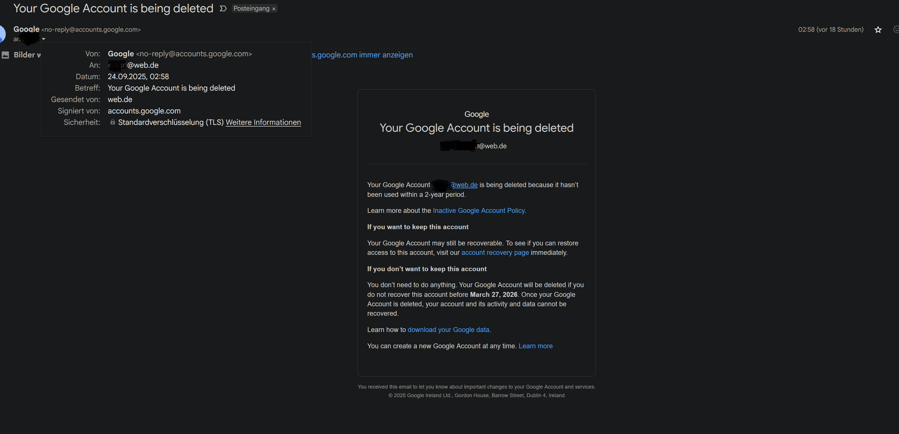 Als Kind hatte ich einmal eine @web.de-Adresse, die E-Mails an mein Google-Konto weiterleitet. Diese Adresse nutze ich allerdings seit über zehn Jahren nicht mehr. Ist diese email echt?