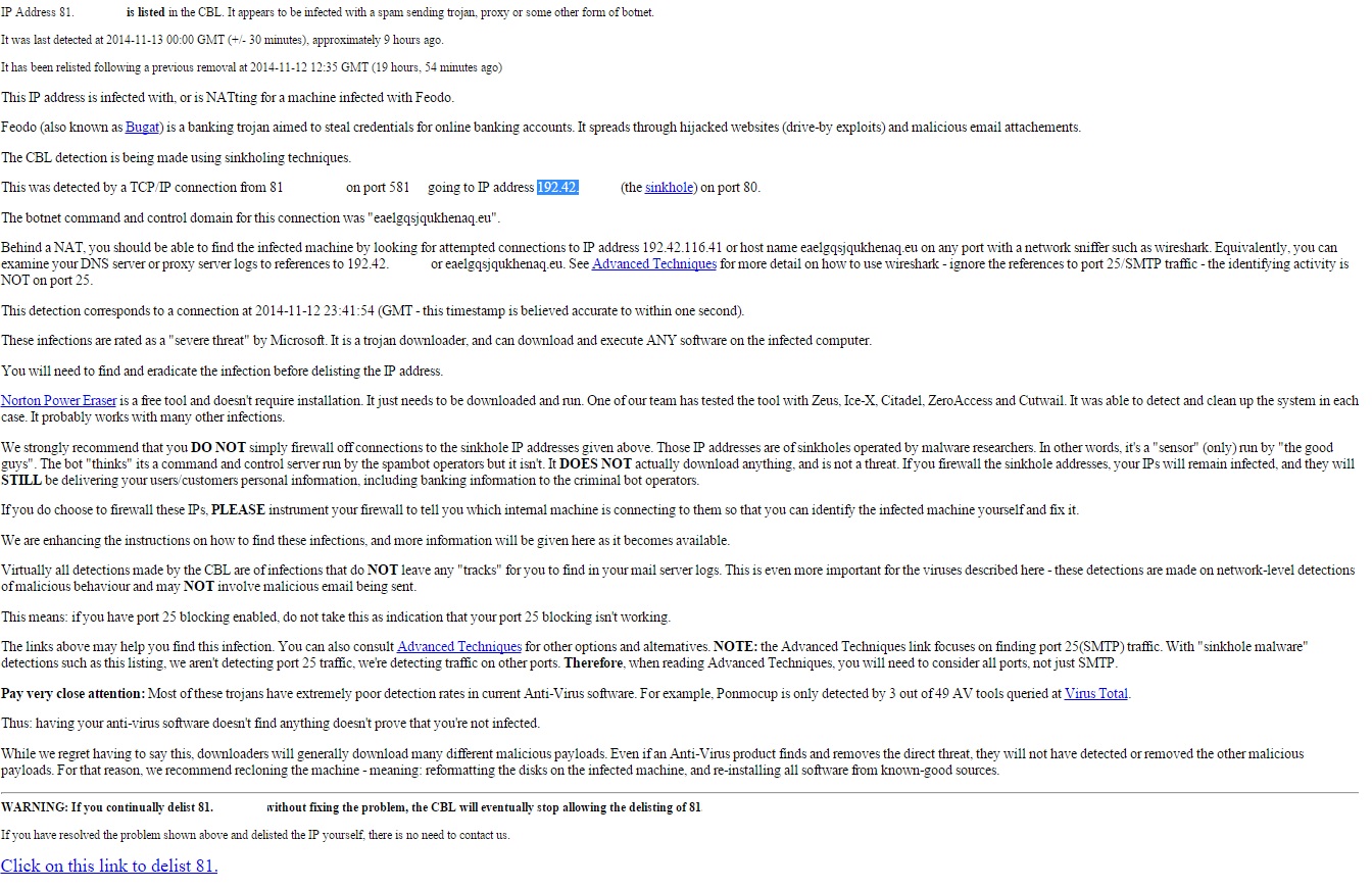 Service unavailable; Client host [81.223.] blocked using Spamhaus - listed XBL To request removal from this list see - siehe Anhang