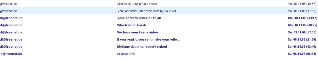 unten füge ich mal einen Ausschnitt an, wies in meinem Postfach aussieht. Mich stört nicht der Spam ansich, sondern das ich als Absender der Mail drin stehe.