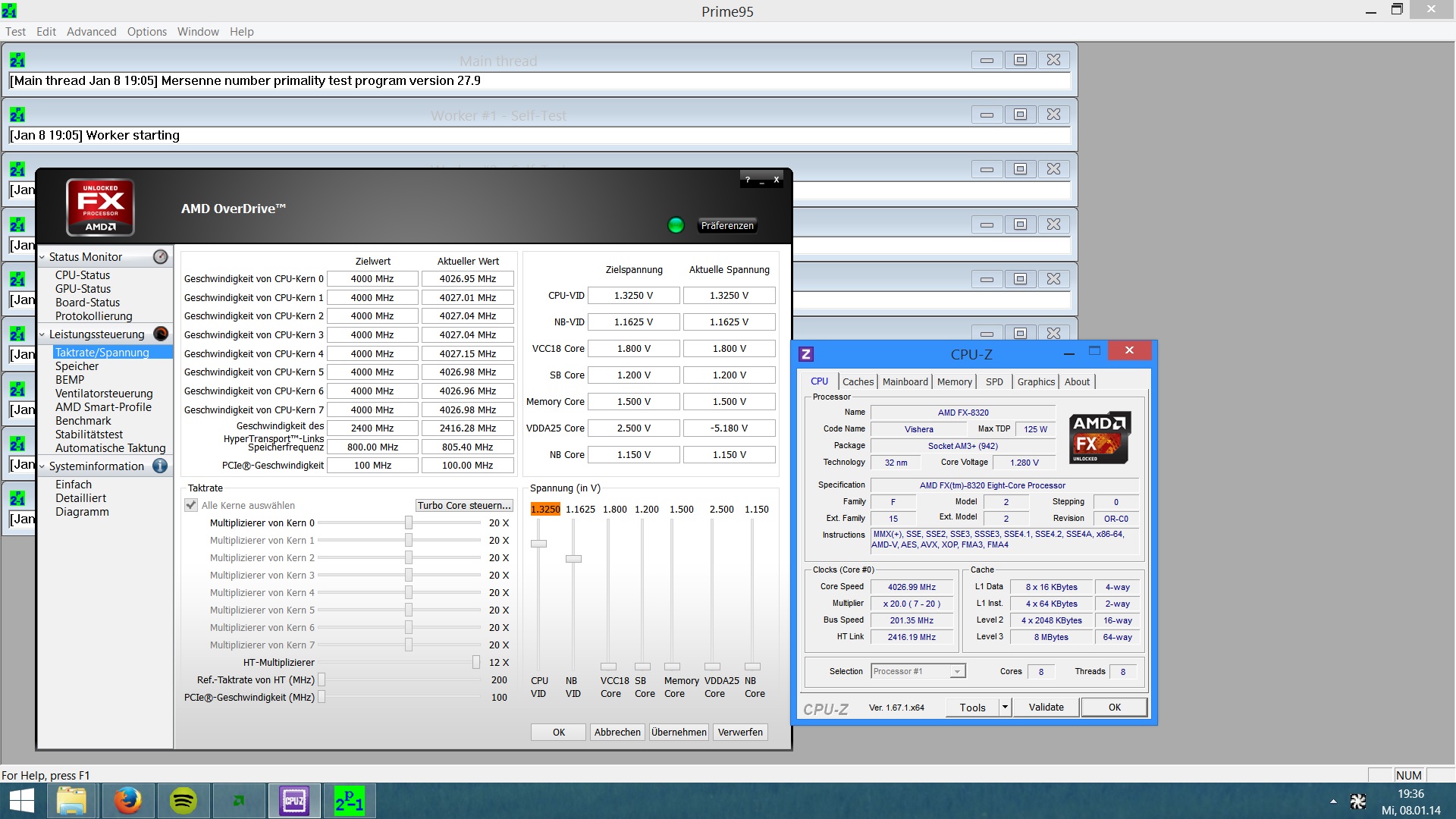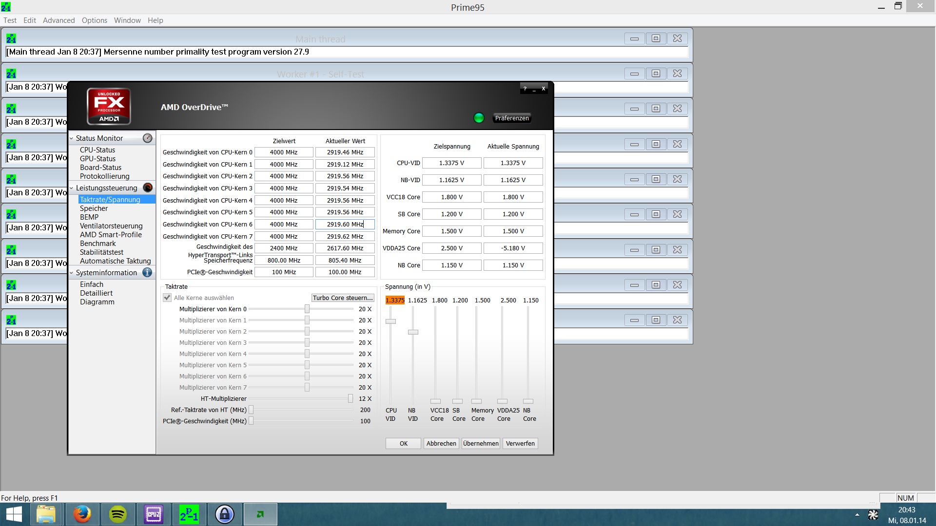 Trotz eingestellten 1,4v hat sie nur 1,328v im Idle.Die Frage ist bekommt die CPU wirklich nur 1,328v oder 1,4?weil sonst könnte man auf 1,5v oder gar 1,6 stellen.Ich finde das nur sehr riskant falls das ein auslesefehler ist.