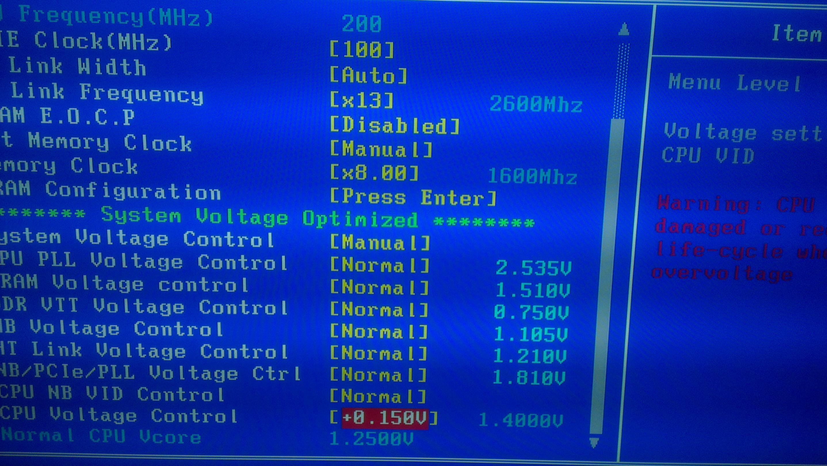 Ich sag mal so, wenn die Temp zu hoch werden sollte,schaltet sich die CPU doch eh ab.Wenn ich wüsste ob sie wirklich mit der Spannung läuft die das Bios ausgibt, hätte ich keine probleme auch 1,6v oder gar 1,7v einzustellen.Meine angst ist halt, dass das Bios die Spannung falsch ausliest und ich die CPU bruzzel.