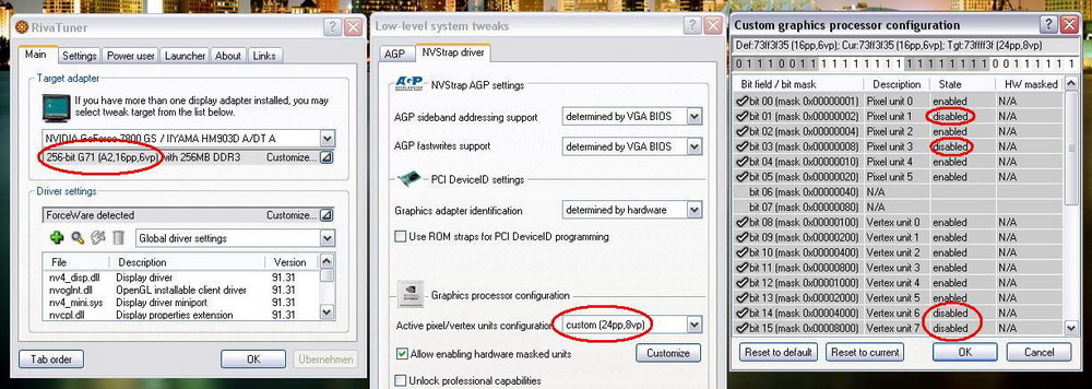 Ich habe die betreffende Karte seit ein paar Tagen und nun stelle ich mir immer wieder die Frage, ob es wohl möglich währe, die 16 Pixel-Pipelines sowie 6 Vertex-Shader auf 24 und 8 zu erhöhen. Verbaut ist der G71 Chip von nVidia. Sollte daher rein "theoretisch" machbar sein und auch "funktionieren".