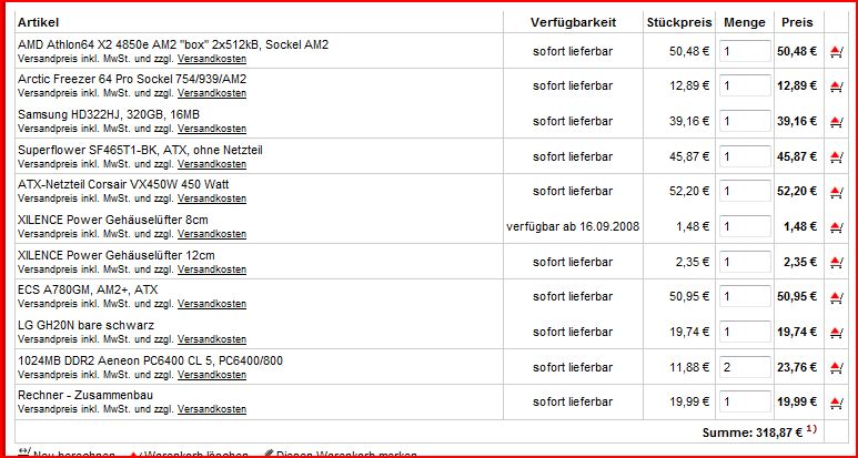 (bei hardwareversand) P.s: habe noch ein gehäuse in dem ein matx board verbaut ist (pc2) werde diesen dann in das kleinere gehäuse bauen und als lan rechner nutzen, da stören mich die imense lautsträke und der verbrauch nicht